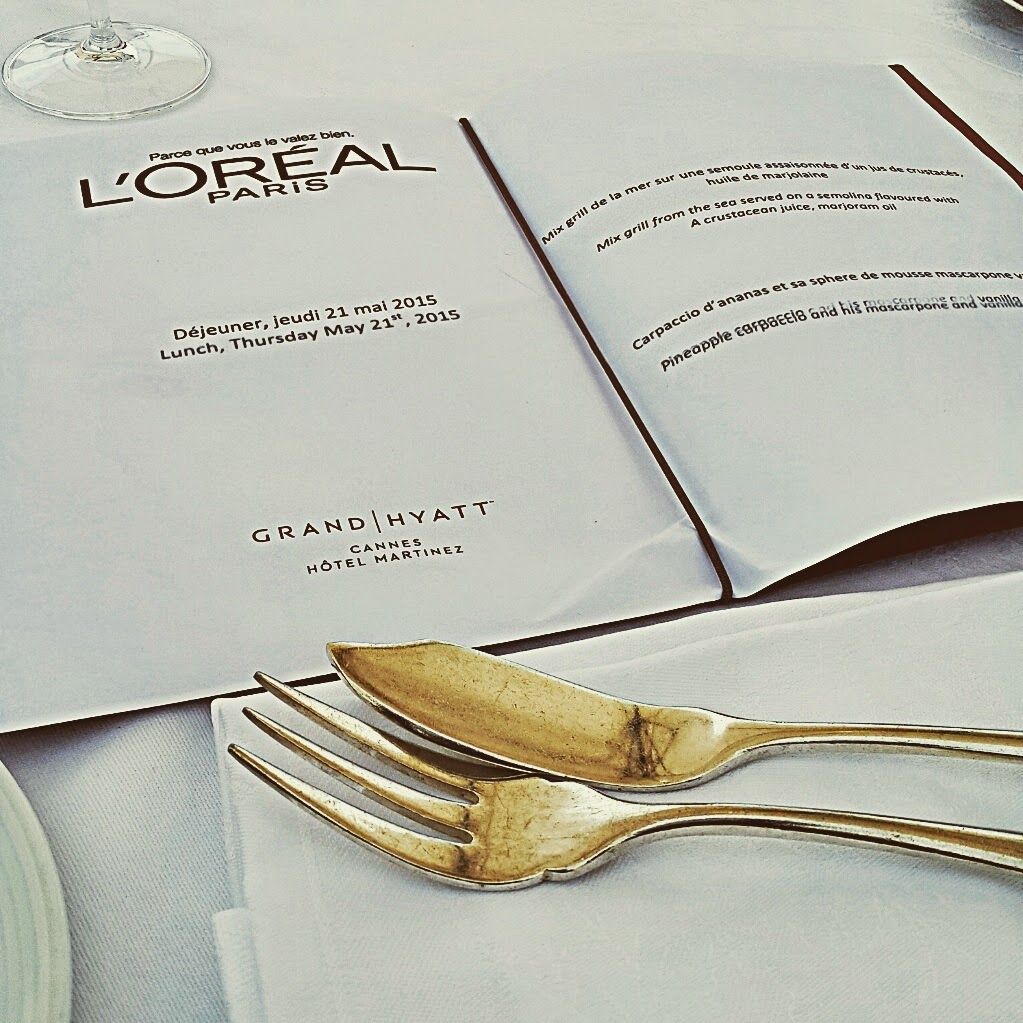 En janvier dernier, je vous annonçais sur le blog que L'OREAL PARIS organisait son premier concours MAKE'UP international => ICI. Qui sera le prochain Maquilleur-Expert L'Oréal Paris ? Découvrez les 12 finalistes internationaux : Alexandra, Caitlyn, Emma, Jamie, Jay, Jeannie, Kitipat, Luna, Müesser, Paula, Salima, Vivianne. Ils ont tous participé à la grande finale internationale The Brush Contest qui a eu lieu à Cannes le 20 mai 2015 pour remporter un contrat de Maquilleur-Expert L'Oréal Paris d'une valeur de 100 000 €. Restez connectés le 10 juin pour découvrir qui sera le grand gagnant! En attendant voici une petite vidéo: A l'occasion de cette grande finale, j'ai eu l'immense honneur d'être invitée par L'OREAL PARIS et sa superbe équipe pour vivre 48 heures de folies et d'effervescence cannoise pendant le festival. Une journée qui a débuté dès 5H30 du matin où un taxi est venu me récupérer à la maison pour me ramener à l'aéroport de Roissy. Notre vol Air France a décollé à 7H15 de Paris et nous avons atterri à 8H45 à Nice où le staff L'OREAL est venu nous chercher . C'est à bord des voitures officielles du Festival de Cannes que nous avons effectué le transfert jusqu'à hôtel mythique du Martinez. Un temps ensoleillé nous attendait pour commencer cette journée qui s'annonçait chargée mais belle en rencontre et en émotion. Je pensais qu'on allait directement monter dans nos somptueuses chambres pour déposer nos bagages mais il en était tout autre. Nous avons déposé nos bagages aux lobbys et sommes allés directement à l'enregistrement de la finale THE BRUSH CONTEST qui se tenait également dans l'hôtel au Rez-de- Chaussé.