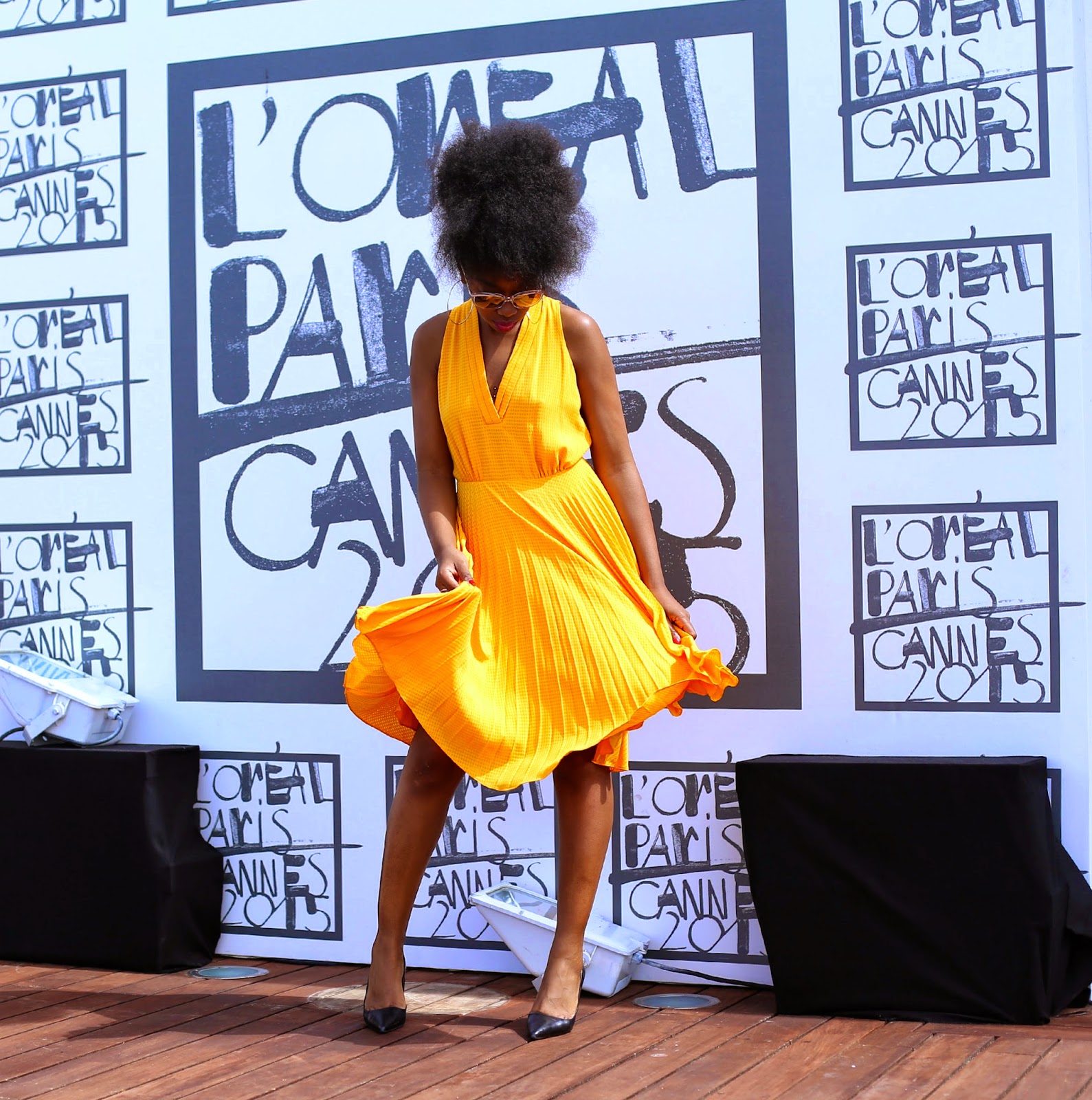 Un tournage orchestré par la sublime Eva Longoria. Une femme pétillante, belle et pleine d'énergie. A chaque fois qu'elle souriait ou nous faisait des blagues, je revoyais la Gabrielle Solis des Desperates Housewives. Le tournage a duré jusqu'à 14H45! Cette finale était stressante car chacun des finalistes était fantastique. Je n'ose même pas imaginer le stress et la peur de maquiller quelques une des plus grands top models au monde comme Barbara Palvin, Doutzen Kroes, Karlie Kloss, Lara Stone et Sooj Mooj. Photos crédits @ MarieLuvPink Finale et enregistrement terminés, il nous restait une heure pour prendre une douche! Heureusement pour nous pas de bagages à récupérer, tout avait été déposé dans chacune de nos chambres. Bien évidemment avant de rejoindre ma chambre qui se trouvait au premier étage, il me fallait ma photo des célèbres escaliers du Martinez qui avaient vu fouler les pas de nombreuses stars. De retour dans ma chambre, direction chouchoutage sous la douche avant que le coiffeur de Jacques Dessange et la maquilleuse de L'OREAL PARIS viennent frapper à ma porte où leur arrivée était prévue pour 16H (VIDEO=> ICI) Après la séance makeup et coiffure et habillage me voici enfin prête à aller rejoindre le cocktail L'OREAL avec les égéries, équipe L'OREAL, bloggeuses et invités. Le cocktail a eu lieu autour de la piscine du Martinez à 17H30. Pochette: Isabetta FRANCHI Cette robe qui fait partie de la collection printemps- été 2015 du couturier Emanuel Ungaro dans différents coloris a été mon coup de coeur parmi toutes les tenues que mon ami et styliste Gregory AMBROISINE m'a proposé. Plus qu'un ami c'est un grand styliste et passionné. Il sait ce que j'aime et surtout il sait sublimer les femmes selon leur style et goût sans qu'elles perdent leur identité. A 18h, des voitures nous attendaient pour nous ramener au palais du Festival et monter les marches pour aller voir le film "YOUTH" de Paolo Sorrentino avec le casting du film: Jane Fonda, Michael Caine, Rachel Weisz, Madalina Ghenea, Harvey Keitel et Paul Dano. Mais aussi un parterre de stars qui ont foulé le tapis rouge ce soir là comme Chanel Iman ou Kendal Jenner. Après la montée des marches chronométrée à 18H30 direction la salle de projection pour un film sympathique qui rencontrera du succès en salle. 21heures, retour à l'hôtel le temps de se rafraîchir et changer de makeup et tenue pour le dîner qui avait lieu a 22H avec les finalistes du BRUSH CONTEST et l'équipe L'OREAL. Bustier & Jupe GRETA CONSTANTINE Pochette: Isabetta FRANCHI Greta Constantine est aussi une célèbre marque de deux créateurs que j'affectionne, et ce look concocté par mon ami Grégory est celui que j'ai choisi pour aller diner. En allant me rendre au dîner, j'ai eu la chance de croiser le sublime top model Joan Smalls, qui elle aussi logeait au Martinez. Le Martinez et ses couloirs remplis de rencontre surprise, comme prendre l'ascenseur avec Mary J Blige et son mari, où croiser Kendal et Cara se faire assaillir à l'accueil par les photographes et fans.