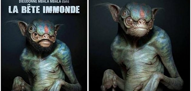 La Bête immonde a déjà fait parler d'elle pour ses relents antisémites et homophobes. C'est désormais l'affiche du nouveau spectacle de Dieudonné qui est au centre d'une polémique pour plagiat. Sur sa page Facebook, l'artiste Ken Barthelmey explique avoir été alerté par des connaissances qui ont reconnu l'une de ses œuvres sur l'affiche de l'humoriste controversé.