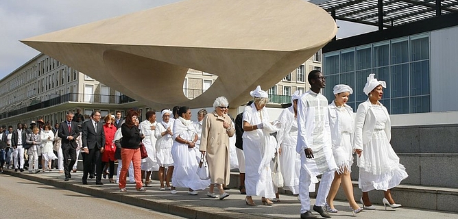 Hommage. Au Havre, ancien port négrier, les cérémonies de commémoration de l’abolition de l’esclavage ont une dimension particulière. Doit-on aller plus loin dans la mémoire de cette histoire qui est aussi locale ? Du blanc qui claque dans le vent. Du blanc sur les vêtements et les dentelles dont se sont parées les femmes. Du blanc sur les roses qui sont déposées, une à une, sur la plaque commémorative installée depuis 2009 sur l’esplanade Guynemer, face à l’entrée du port du Havre. « Du blanc parce que c’est la couleur de la paix et celle du deuil dans nos contrées », explique Anaïs Gernidos, représentante de la communauté afro-caribéenne élargie du Havre. En ce 10 mai, journée nationale des mémoires de la traite, de l’esclavage et de leurs abolitions, Le Havre regarde son histoire dans les yeux. Un passé de port négrier qui a fait le commerce d’hommes et s’en est enrichi. « Entre 1783 et 1792, c’est-à-dire à la veille de la Révolution française, quarante-cinq maisons de commerce havraises armaient des navires pour la traite des Noirs. Notre ville se doit d’assumer toute son histoire de manière objective, consciente et sereine, avec ses heures glorieuses mais aussi avec cette part d’ombre », a ainsi rappelé hier Luc Lemonnier, maire du Havre, dans son discours. Une pétitionen ligneIl s’est félicité du travail pédagogique réalisé avec les scolaires, dont on peut regretter l’absence à la cérémonie, mais aussi l’information transmise par le musée de la Maison de l’Armateur sur le sujet. Un devoir de mémoire que certains jugent encore trop timoré. Un Havrais, Pierre Lenoir-Vaquero, a lancé une pétition sur Internet pour réclamer plus de visibilité sur le passé négrier du Havre qu’une simple plaque et une pièce dans un musée. « Il n’existe pas au Havre de lieu adapté pour se souvenir de cette page sombre de notre histoire. En effet, j’ai été surpris de découvrir il y a quelques années, par hasard, la plaque commémorative scellée près du musée Malraux. Elle est trop discrète, au point que l’on marche dessus si nous ne faisons pas attention. Très nombreux sont les habitants qui ne connaissent pas son existence et par conséquent ce passé de notre ville. En mémoire des millions de victimes de la traite des Noirs et des personnalités qui se sont battues pour l’abolition de l’esclavage en France et ailleurs, notre ville a le devoir de dédier un site pour se souvenir, pour informer, pour éduquer, hors des écoles et des musées », écrit-il dans un texte adressé au maire. Luc Lemonnier n’est pas contre. Mais pas question pour lui de débaptiser les rues portant des noms d’armateurs négriers. « Tout ce qui ira dans le sens de la pédagogie et du rappel de l’unité humaine est bon. Il faut sensibiliser les jeunes générations sans se flageller. Ce travail sur l’asservissement est un prétexte à questionner sur le comment vivre ensemble », explique l’élu. « S’approprier notre histoire »Suivre l’exemple de Bordeaux et Nantes en apposant des plaques explicatives aux noms des rues qui évoquent cette traite ? « Je n’y suis pas opposé, à condition que cela ait du sens. Se souvenir pour se souvenir n’a pas de valeur. Il lui faut un retentissement dans notre vie quotidienne », ajoute Luc Lemonnier, faisant référence aux sujets de racisme « que l’on voit encore tant d’années après ». Et Anaïs Gernidos acquiesce. « C’est de la traite transatlantique qu’est né le racisme Noirs/Blancs et que s’est forgée l’économie d’aujourd’hui. Le Havre commence à s’approprier cette histoire, son histoire. Et c’est à nous, Havrais, de nous organiser pour trouver, avec nos spécificités, notre façon de ne pas oublier. Peut-être avec plus de manifestations ? » propose-t-elle. Pour le maire du Havre, une réflexion doit être menée avec les acteurs culturels et sociaux. Il estime que le spectacle vivant peut être une bonne façon de traiter le sujet pour l’ouvrir au plus grand nombre. « Parce que l’appropriation de cette mémoire par le grand public ne doit pas forcément être ennuyeuse. » Ce 10 mai 2018, 170 ans après l’abolition de l’esclavage, Le Havre s’est souvenu d’avoir participé à ce crime contre l’humanité qu’est l’exploitation de l’Homme par l’Homme. Et s’il n’a pas dit comment, Luc Lemonnier l’affirme : « On doit aller plus loin ». L’exemple havrais du Premier ministreDans son discours à Paris sur la journée nationale des mémoires de la traite, de l’esclavage et de leurs abolitions, le Premier ministre Édouard Philippe n’a pas manqué d’évoquer, hier, l’exemple du Havre. « L’essor du Havre, comme celui de Nantes, comme celui de Bordeaux, est intimement lié au commerce des colonies, à la traite et à l’esclavage. En 1814, les armateurs du Havre signent une pétition pour maintenir la traite des Noirs, arguant qu’elle conditionne la prospérité des ports, des colonies, de la marine. Le devoir de mémoire commence à une échelle communale avec la lutte contre l’effacement ou la dilution des traces. Au Havre, chez moi, les bombardements de 1944 ont détruit les vestiges historiques de l’esclavage. Il nous a donc fallu inscrire la mémoire de l’esclavage dans le paysage urbain. C’est aussi le choix qui a été fait, de façon remarquable, à Bordeaux ou à Nantes. » Sauf que le traitement de ce pan de l’histoire est, au Havre, bien plus discret que dans les ports cités. À Bordeaux, par exemple, la municipalité va ériger une statue de Modeste Testas, une esclave africaine achetée par deux frères bordelais en 1781. Des plaques explicatives seront apposées sous le nom des rues faisant référence à la traite. Quant à Nantes, la Ville a créé dès 1992 un mémorial de l’abolition de l’esclavage sur les quais de la Loire. Au Havre, la mémoire du commerce tri