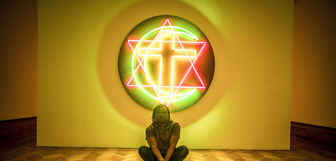 Ce n'est pas la première fois que Tayou fait l'expérience de la destruction. En avril 2011, alors que le Musée d'art contemporain de Lyon l'accueille, la Colonne pascale que l'artiste a dressée dans la nef de l'église Saint-Bonaventure est abattue par des inconnus. " Je pourrais réunir les deux en un diptyque. La colonne avait été installée avec l'accord du curé. Il avait écrit un texte à ce propos et disposé les chaises pour former un cercle autour d'elle. Qui l'a brisée ? On m'a dit : des vandales. Je n'en sais rien. Comme ça s'est passé durant le carême, j'ai préféré dire que c'était Jésus qui l'avait fait tomber en montant au ciel. Et que donc il n'était pas question de restaurer une œuvre qui avait été achevée par le Christ. " Il n'est pas certain que l'humour de l'artiste ait été du goût de ses ennemis. Il n'en affirme pas moins que, de tels sujets, " il est mieux de parler avec légèreté ". Pourquoi provoque-t-il des réactions si violentes ? Parce qu'il appuie sur des points douloureux. " Quelquefois, je tourne le couteau dans la plaie. Diagnostiquer la situation, c'est mon métier. On m'appelle artiste. Mais ce que je fais, ce sont des diagnostics. Des relevés à partir de mes observations sur l'espèce humaine. Comme je constate que les hommes lancent des boomerangs qui reviennent leur trancher la tête, l'exposition s'appelle "Boomerang". "